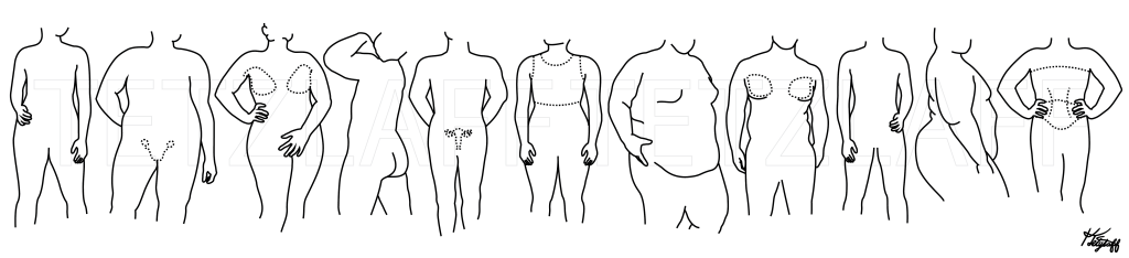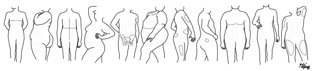 Much medical imagery, particularly diagnostic and assessment tools, exclusively depict a young, thin, able male form as the “standard human” when a more gender-neutral figure would be more appropriate for this goal. Additionally, as the average body size in the West is larger, it can be more helpful to utilize figures with a fuller body frame to combat stigma and represent more patients.