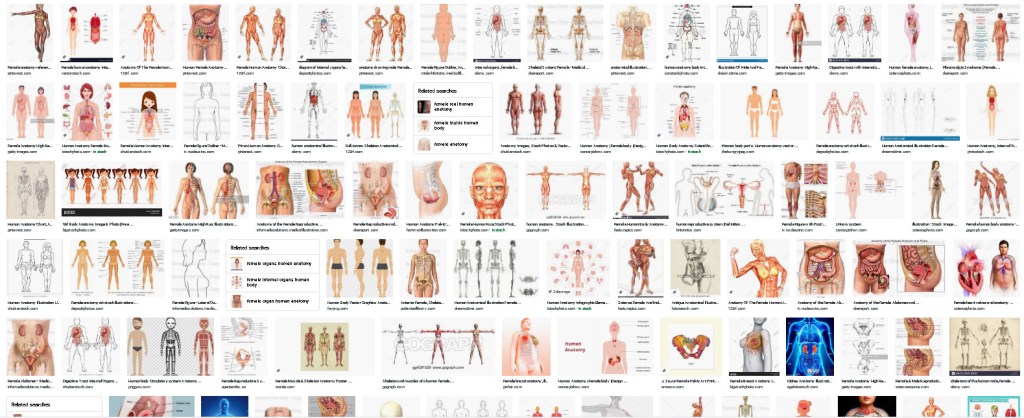 When females are depicted in medical illustration, what do you typically see? The same Eurocentric beauty standards and sexy poses you see in magazines. These images highlight symmetrical breasts, wide hips, small hands and feet, narrow waists, short stature, etc. Such characteristics tend to be more pronounced when the female figure is depicted next to a male, who is typically hypermasculinized.